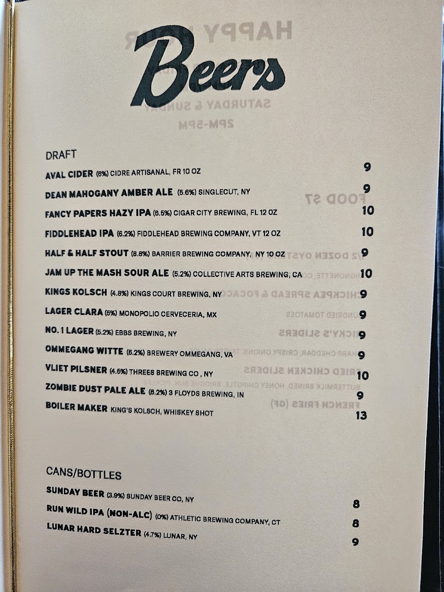 “ Went for happy hour ....best I’ve seen in NYC. For 7 good drinks and tried many. Cool staff great interior. The happy hour food was really good too. ”